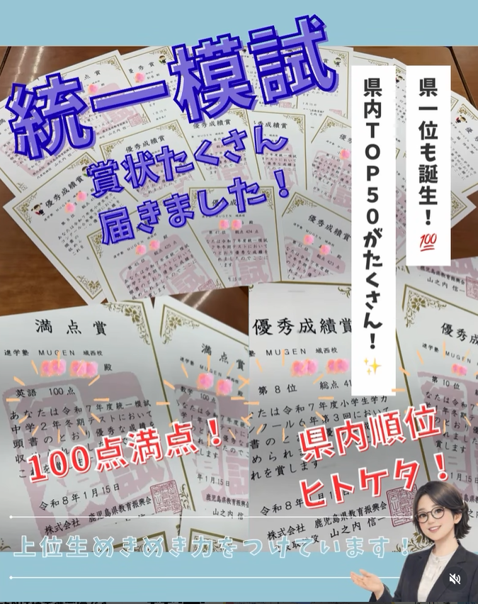 冬期統一模試において、優秀者へ賞状がたっくさん届きました✨