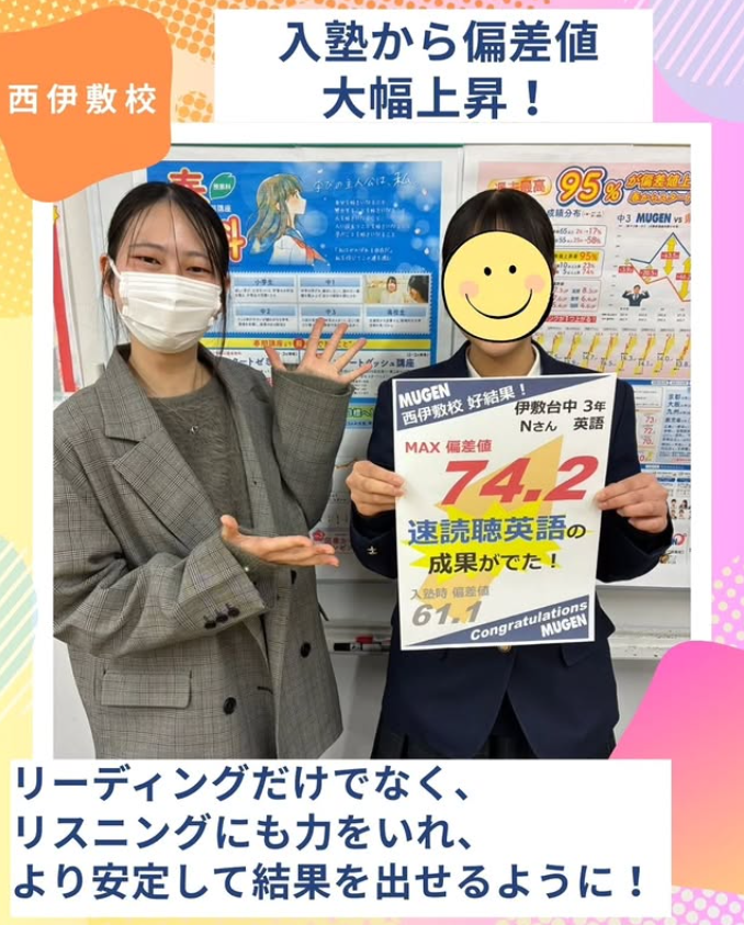 西伊敷校 速読聴英語に取り組んでいるNさんは、入塾後、英語の偏差値が大きく伸びています!
